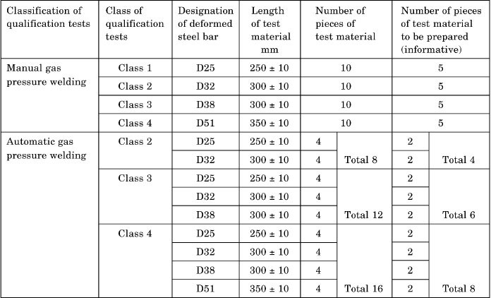 JIS Z 3881 standard qualification procedure for gas pressure welding technique of steel bars for concrete reinforcement
