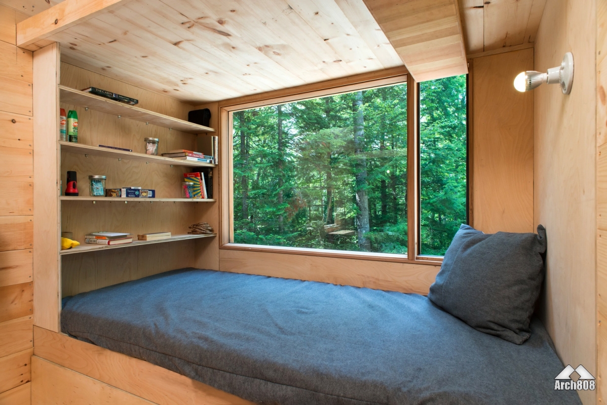 این کابین با پنجره های بزرگ و مبلمان پیوسته ساخته شده است.