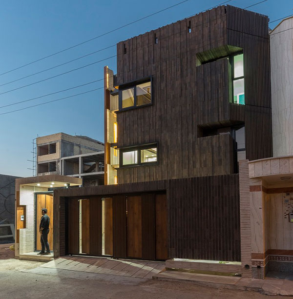 دهانه مناسب ایوان و حیاط ساختمان باعث شده تا فضای گسترده مناسبی برای داخل خانه ایجاد شود. متریال ساختمان از آجر تشکیل شده که ادای احترامی به بعد سنتی منطقه می باشد و به لحاظ حفظ هماهنگی با برخی ویژگی های شهری مدرن به شیوه مینیمال طراحی شده است. طراحی ساختمان به شیوه فوق بر روی دو جنبه از معماری متمرکز شده است. ویژگی اول نمای تیره ضلع جنوبی می باشد که در تضاد با معماری امروزی اجرا شده و جنبه دوم به کار بردن متریال آجر سفید در داخل است که دیدگاهی برای معماری سنتی گذشته می باشد.
