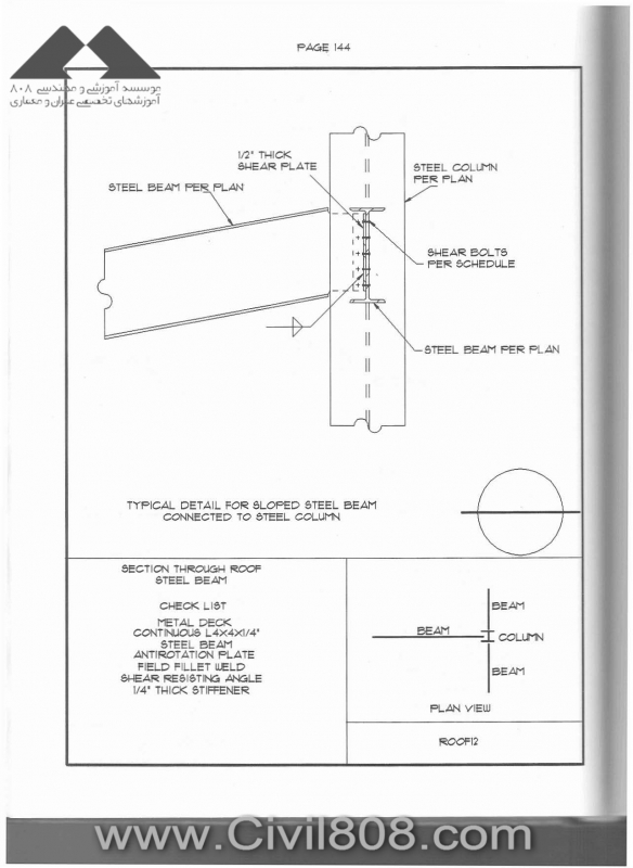 • دوستان دقت داشته باشید که دیتیل های آورده شده می بایستی با آخرین ویرایش AISC همخوانی داشته باشد و مسئولیت تطابق آن با شماست. کتاب مال سال 95 است و 11 سال می گذرد، امکان دارد تغییراتی وجود داشته باشد.