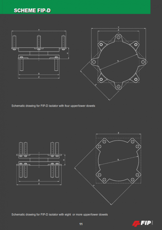 مشخصات فنی جداساز های لرزه ای و میراگر های شرکت FIP تولید ایتالیا